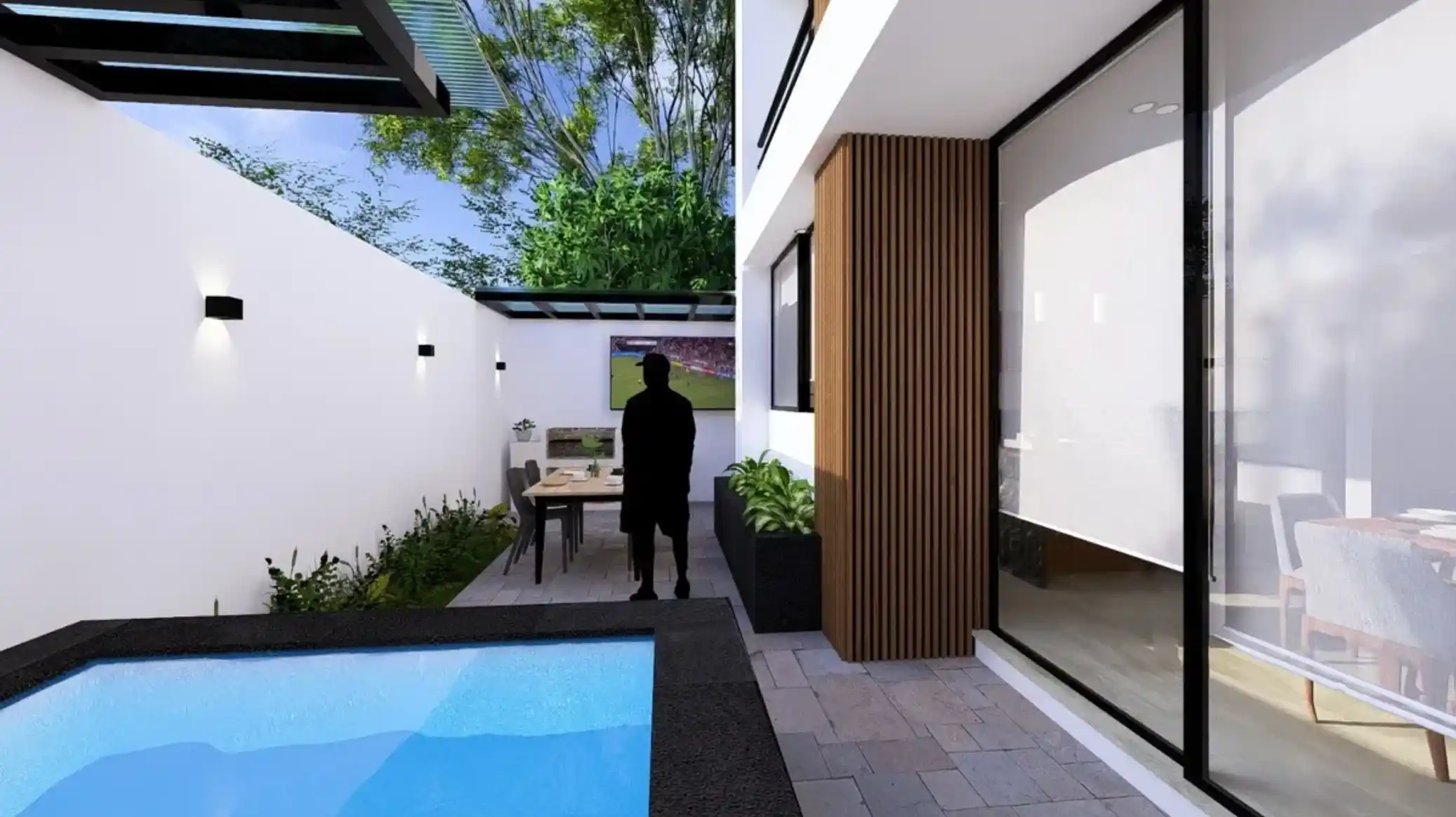 Esta casa cuenta con alberca privada.